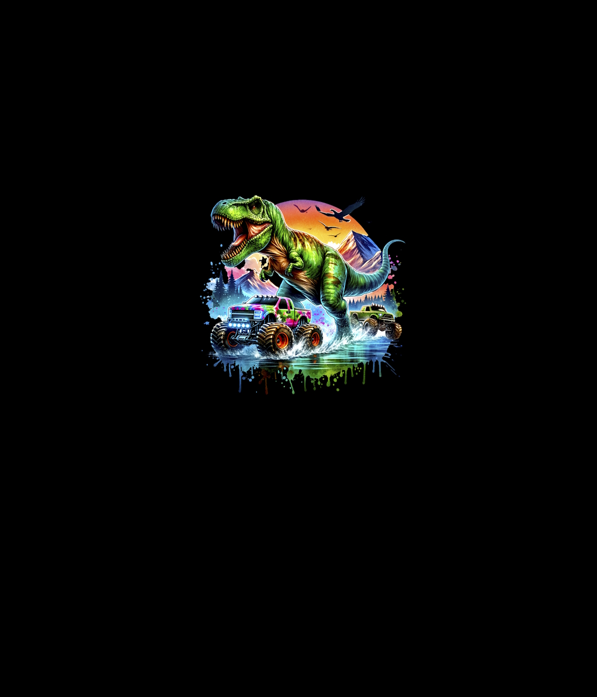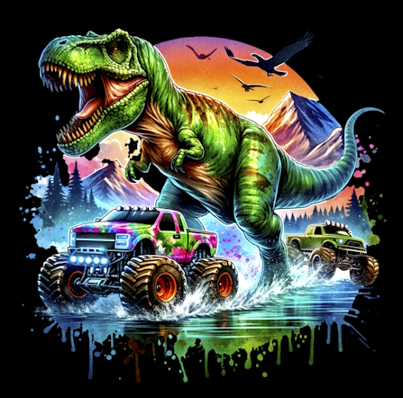Dinos - Panelbild T-Rex & Trucks 70cm - BIO French Terry